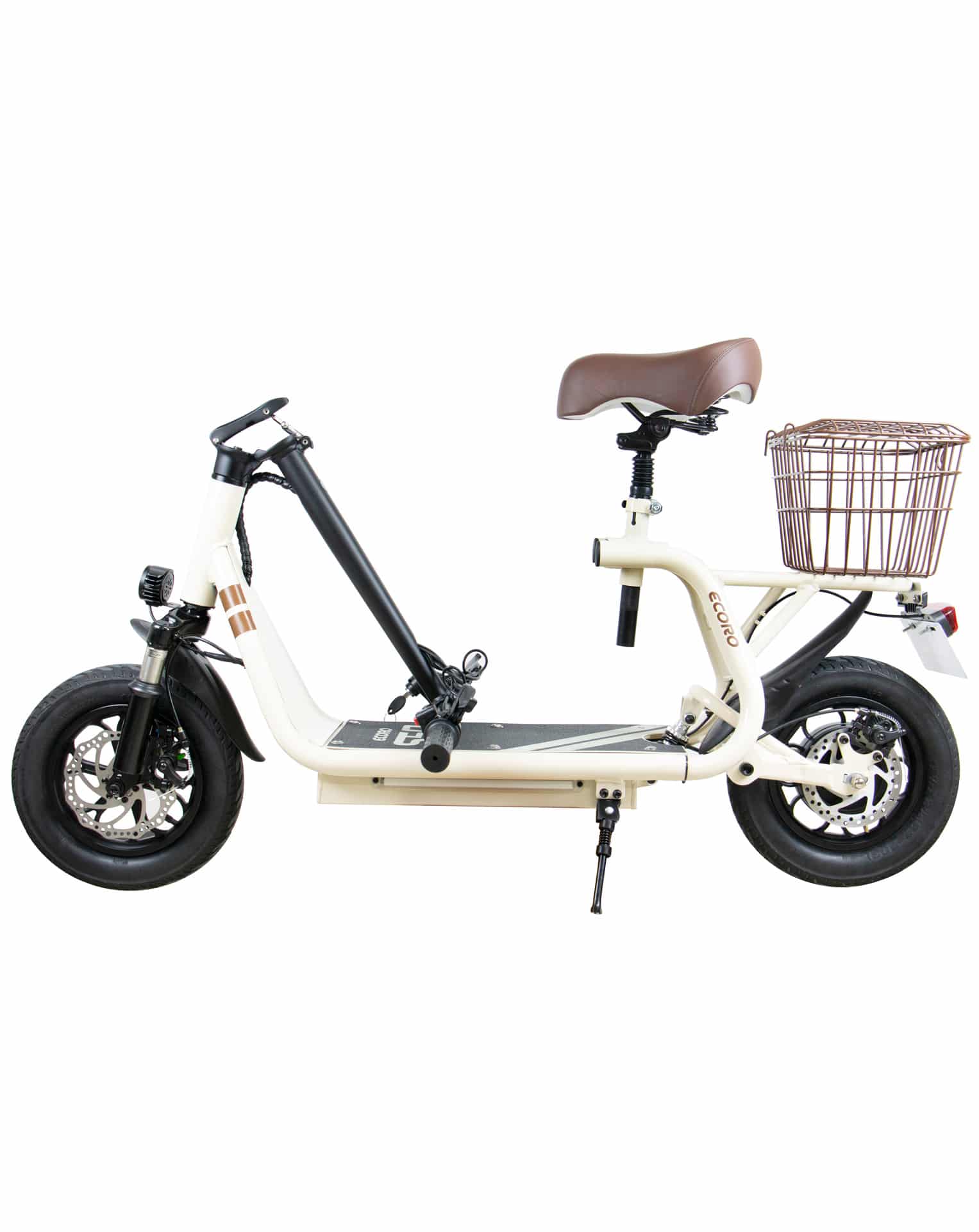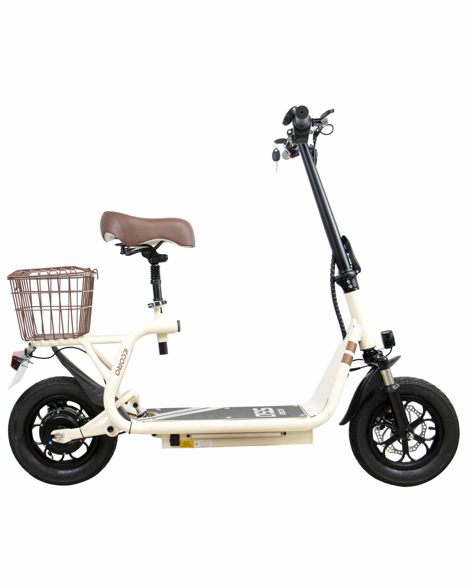 The Tomini D01 electric scooter is perfect for easy commutes. With a permanent adjustable seat, step-through configuration and basket on the back, this scooter makes a trip to the shops for bread and milk super easy and comfortable.